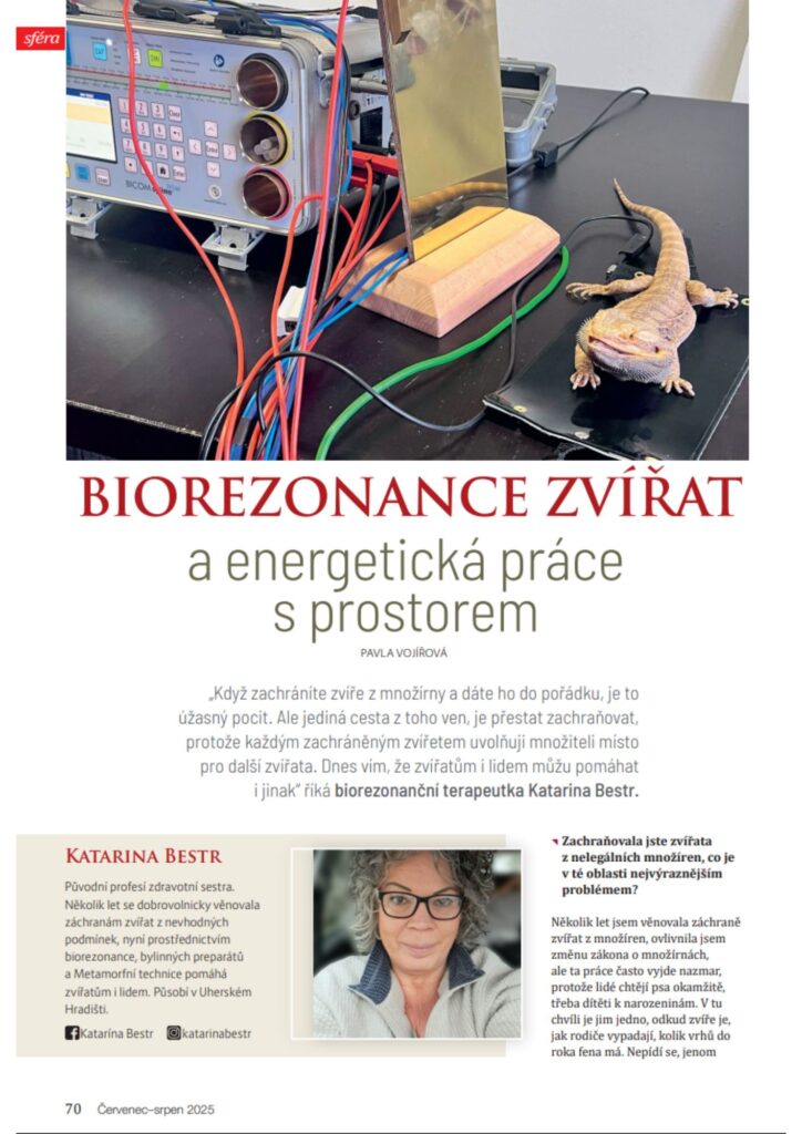 V rozhovoru se dočtete, proč jsem se rozhodla opustit přímou záchranu zvířat z množíren a jak nyní pomáhám mnohem efektivněji skrze biorezonanci (přístroj Bicom), bylinné preparáty a jemné energetické techniky.