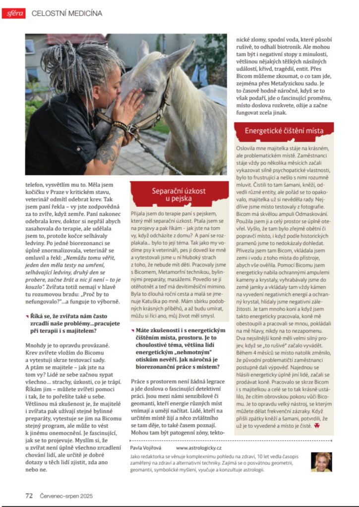 Ráda bych se s vámi podělila o rozhovor, který vyšel v letním dvojčísle časopisu Sféra (červenec–srpen 2025). Vznikl v milé spolupráci s redaktorkou Pavlou Vojířovou a vracím se v něm ke kořenům své cesty i k metodám, které dnes používám ve své praxi.